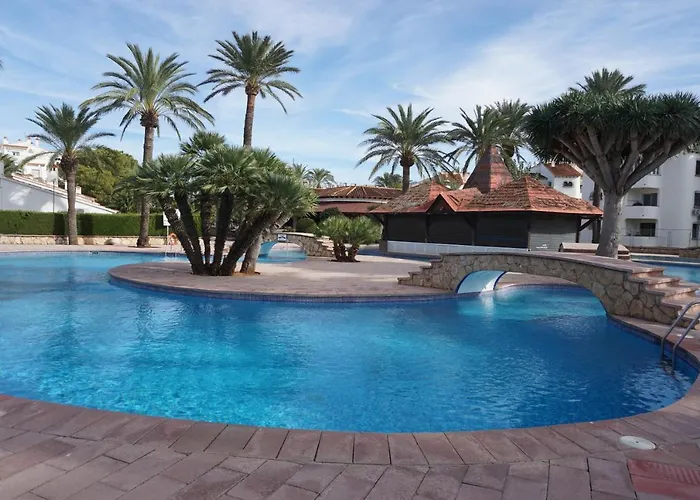 Castillo de Denia y Museo Arqueológico ist 10 Minuten Fahrt von dem 77 m^2 großen Bungalow Buganvilla entfernt, während sich Playa Les Bovetes in der Nähe befindet. Das 2-Zimmer-Apartment bietet einen Außenpool und eine Terrasse für den Komfort der Gäste.